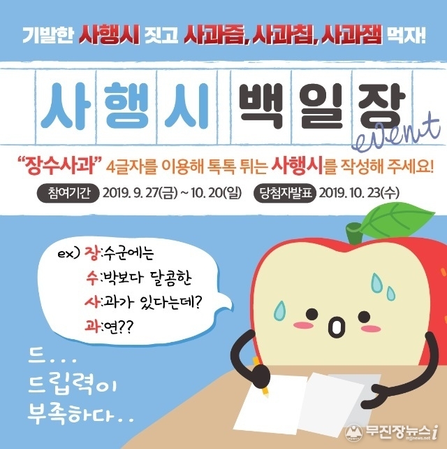 장수군이 오는 23일까지 ‘장수사과 사행시 백일장’ SNS이벤트를 진행한다.