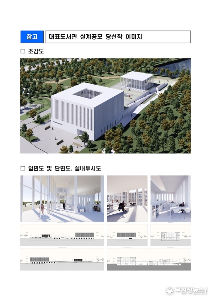 이번 설계 공모에는 총 3개 작품이 출품되었고, 이 중 세계 유명도서관 중 하나인 독일 슈투트가르트 시립도서관을 설계한 이은영 건축가가 대표로 있는 Yi Architects(이아키텍츠)와 ㈜종합건축사사무소 에이그룹이 공동응모로 출품한 작품이 당선작으로 선정되었다.