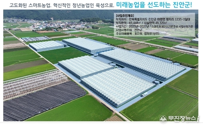 전북특별자치도는 농림축산식품부의 2025년 스마트원예단지 기반조성사업 공모에 진안군이 선정되어 6.9ha 규모의 대규모 스마트팜단지를 조성하게 되었다고 밝혔다.