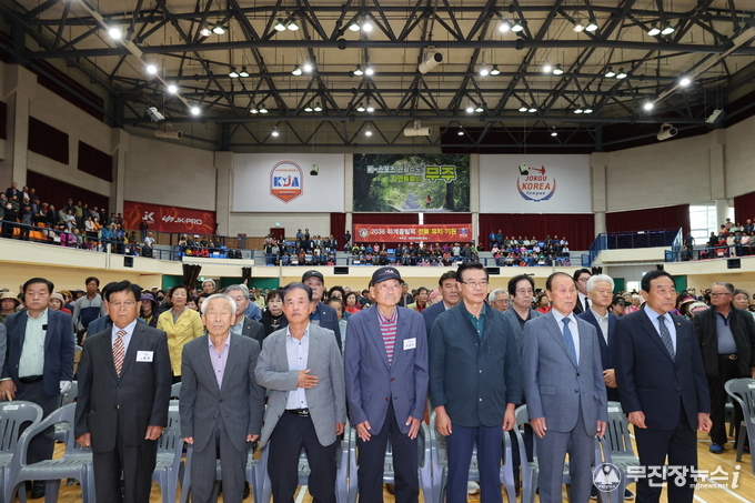 (사)대한노인회 무주군지회가 주관하고 무주군이 주최한 이날 행사는 어르신들을 향한 존경과 감사의 마음을 담아 마련한 것으로, 황인홍 무주군수와 오광석 무주군의회 의장, 윤정훈 전북특별자치도의회 의원을 비롯한 대한노인회 무주군지회 회원 등 2천여 명이 함께 했다.