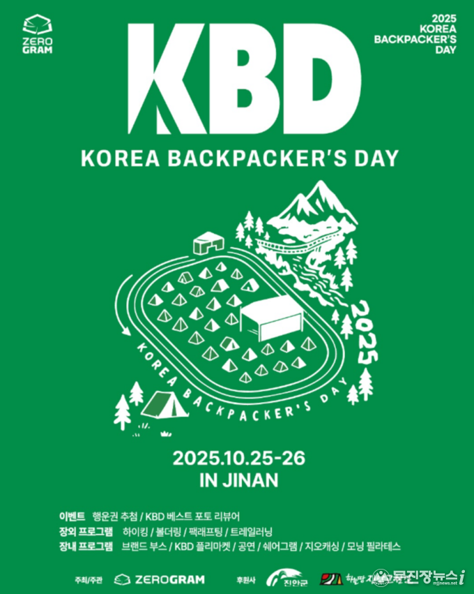 진안군은 오는 10월 25일(토)부터 26일(일)까지 이틀간 ‘2025 코리아 백패커스 데이 & 워크 어라운드 생태호수’ 행사를 개최한다. 이번 행사는 아웃도어 브랜드 제로그램의 주최·주관으로 전체적인 행사 기획․운영 및 콘텐츠 구성을 이끌어낸다. 진안군은 주천생태공원, 진안읍 가막천 주변 등 장소 제공 및 일부 트레킹 프로그램을 주최하고, 지역 특산품 및 먹거리 시식․판매, 기념품 등을 후원한다.