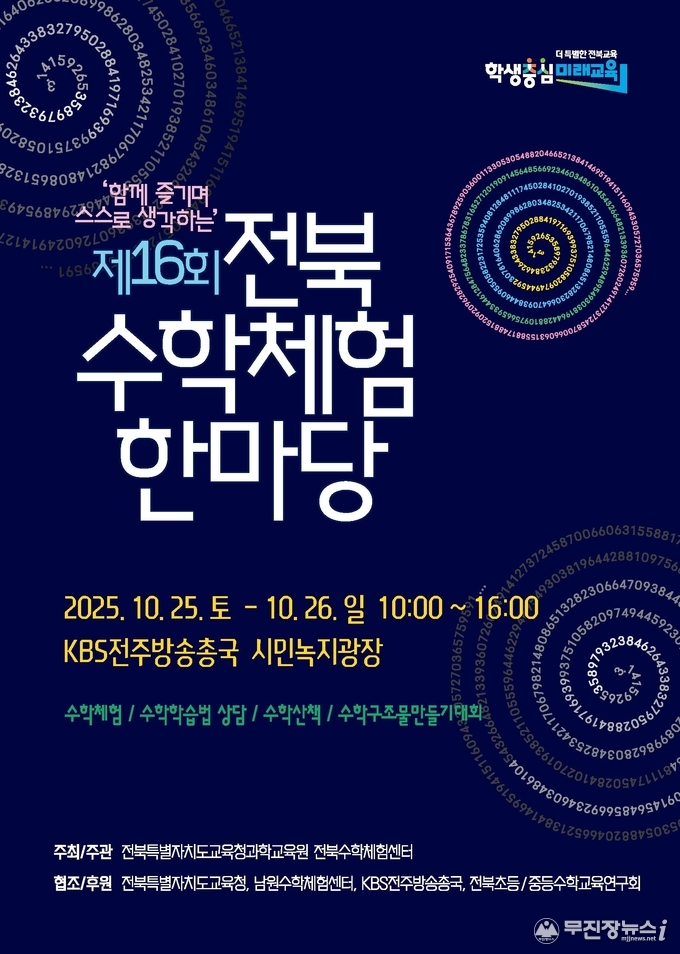 전북특별자치도교육청과학교육원(원장 강진순)은 오는 25~26일 KBS전주방송총국 시민녹지광장에서 ‘제16회 전북수학체험한마당’을 개최한다고 22일 밝혔다.