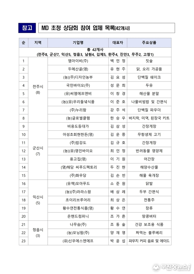 전북특별자치도와 전북특별자치도경제통상진흥원(이하 경진원)은 10월 23일 전북테크비즈센터에서 ‘2025 전북상품 유통채널 상품기획자(이하 MD) 초청상담회‘를 성황리에 개최했다고 밝혔다.