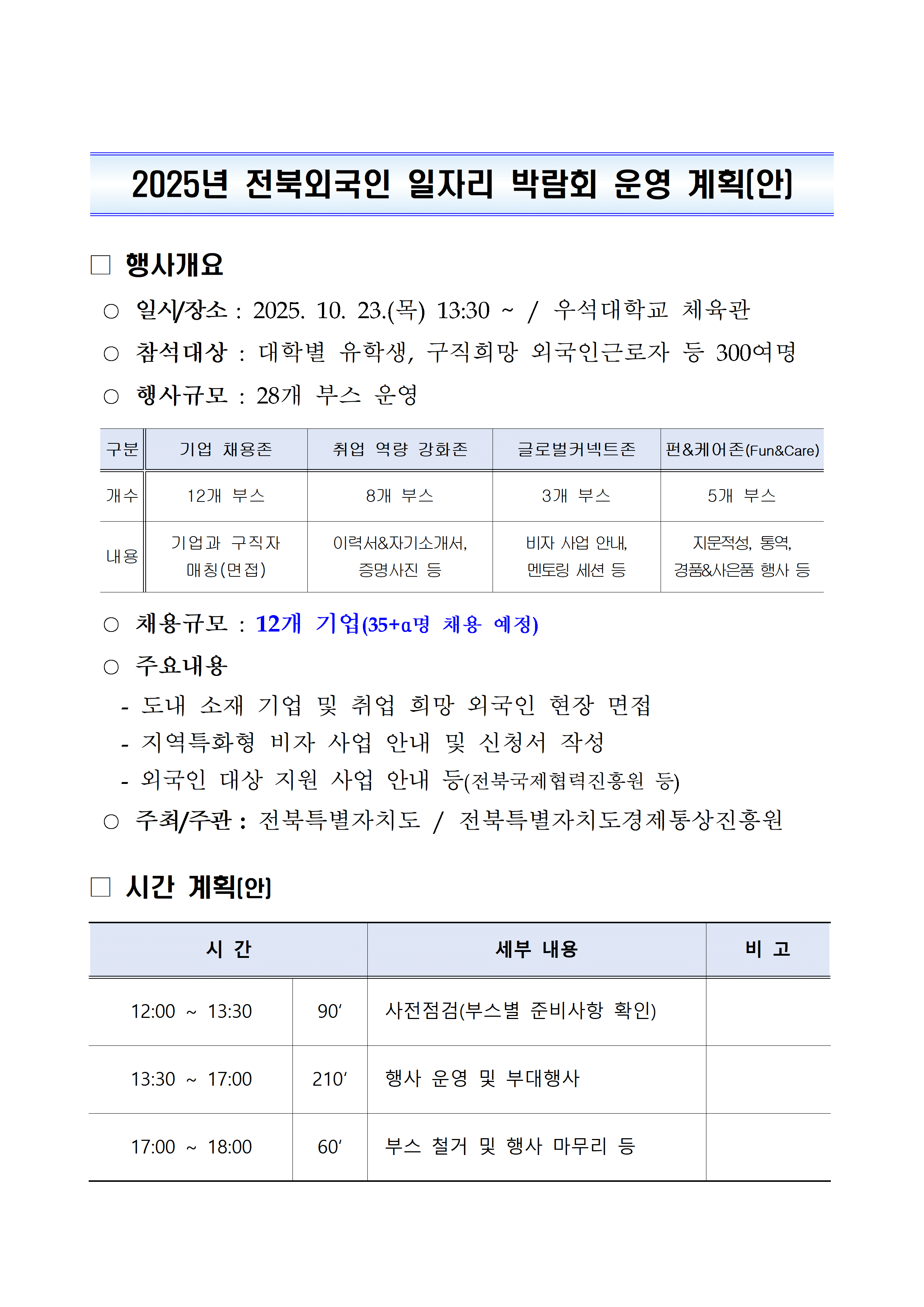 전북특별자치도는 10월 23일 우석대학교 체육관에서 ‘2025 전북 외국인 일자리 박람회’를 성황리에 개최했다고 밝혔다.