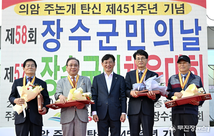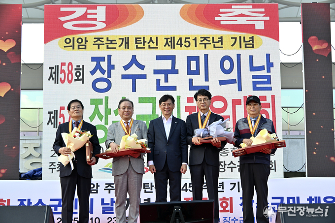 또한 제43회 장수군민의 장 수상자인 문화체육장 오재영(남·77세), 산업공익장 이정관(남·64세), 애향장 이종순(남·67세), 효열장 한병원(남·73세) 씨에 대한 시상도 함께 진행됐다.