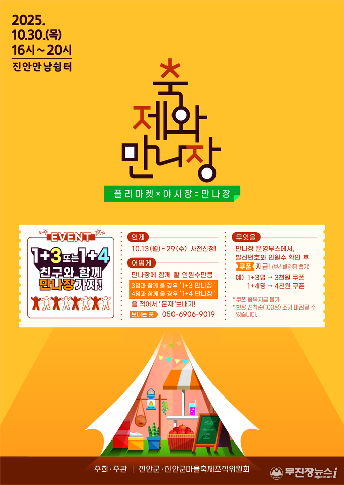 진안군과 진안군마을축제조직위원회가 주최·주관하고 지역 주민 모두가 함께 만드는 문화 행사인‘축제와 만나장’이 오는 10월 30일(목) 오후 4시부터 8시까지 진안 만남쉼터에서 개최된다.