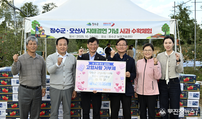 최훈식 장수군수는 “청정 농업도시 장수군을 찾아주신 오산시 교류협회에 깊이 감사드린다”며 “소중한 기부금은 군민의 행복과 지역 발전을 위한 밑거름으로 소중히 사용하겠다”고 밝혔다.