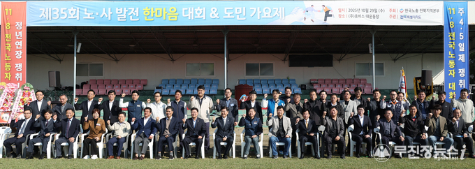 전북특별자치도는 29일 ㈜휴비스 대운동장에서 ‘제35회 노사발전 한마음 대회 및 전주 하계올림픽 유치 기원 도민가요제’를 개최하여 노동계와 도민이 함께 전주 하계올림픽 유치를 응원하는 뜻깊은 자리를 마련했다고 밝혔다.