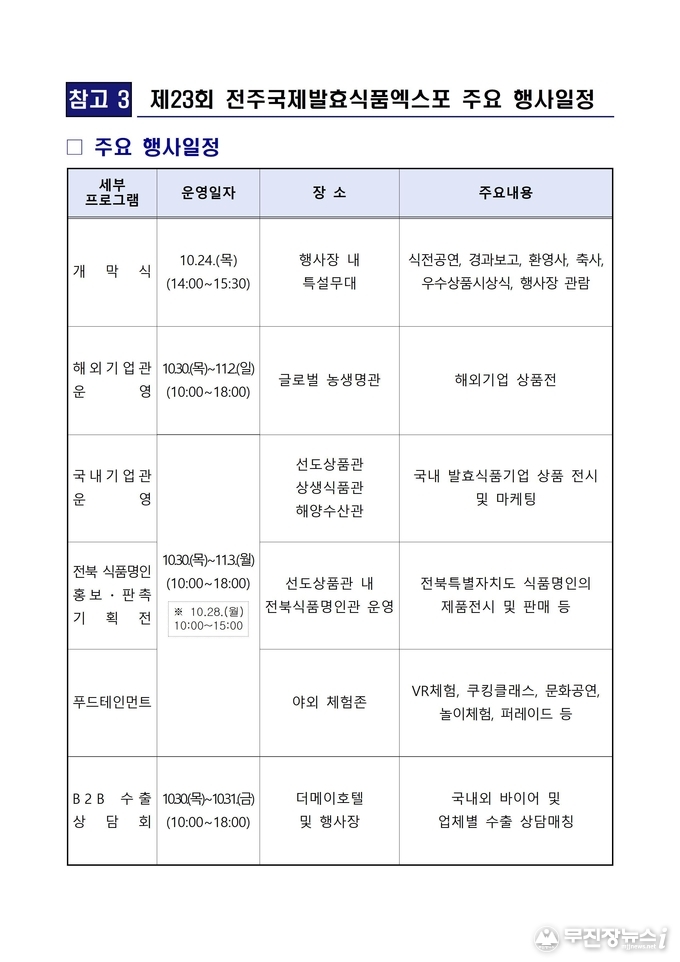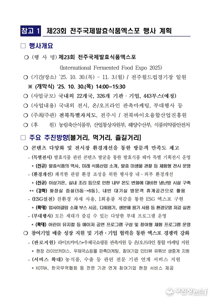 전북특별자치도는 10월 30일부터 11월 3일까지 전주월드컵경기장 일원에서 ‘제23회 전주국제발효식품엑스포’를 개최한다.