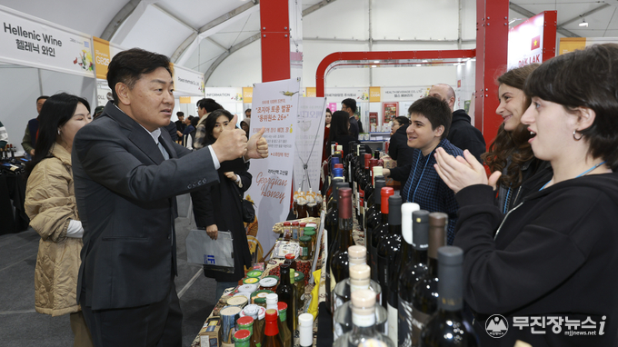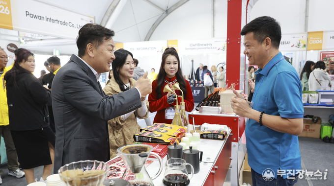 김 지사는 해외기업관에서 조지아·슬로베니아 등 해외 기업 부스를 먼저 방문해 세계 각국의 발효식품 트렌드를 살펴보고, 글로벌 시장 흐름을 공유했다. 이어 선도상품관, 상생식품관, 해양수산관 등을 차례로 둘러보며 도내 참여 기업 제품을 직접 시식하고, 제품 경쟁력과 전시 운영 현황을 꼼꼼히 확인했다.