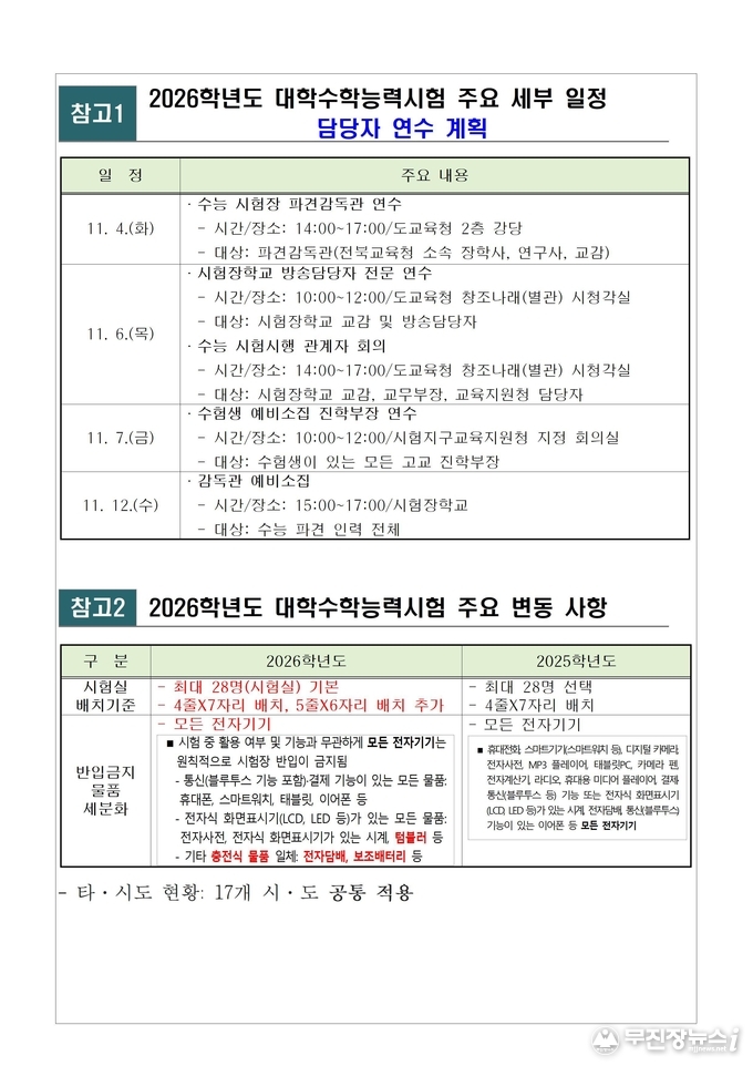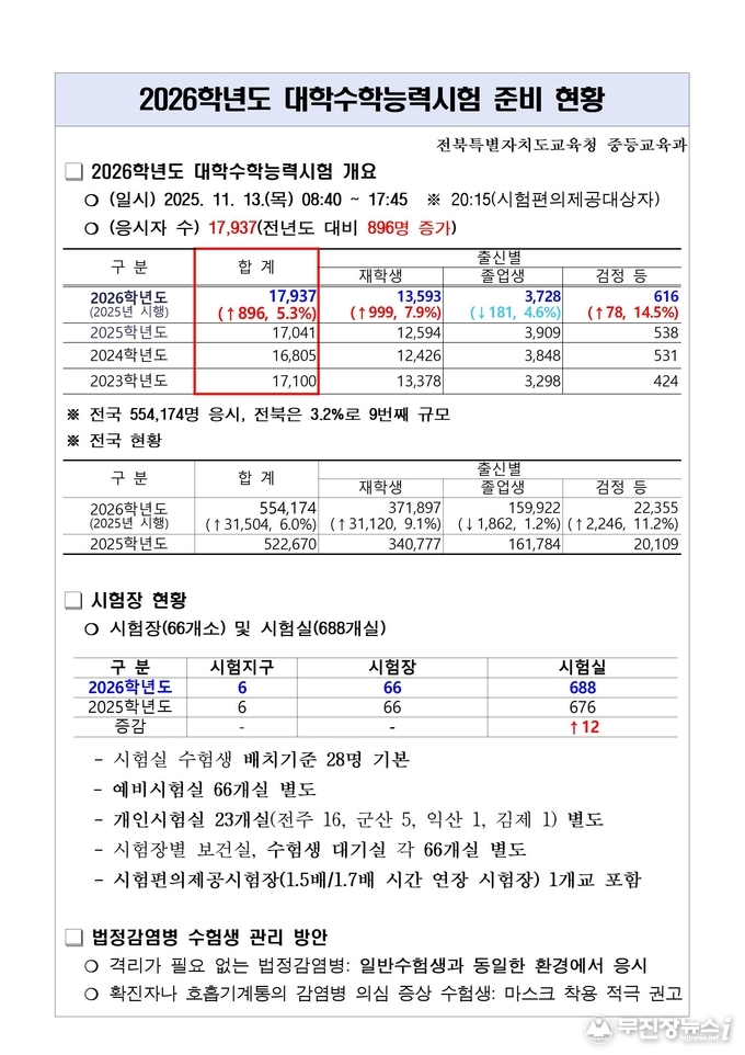 2026학년도 대학수학능력시험이 열흘 앞으로 다가온 가운데 전북특별자치도교육청은 안정적인 수능 운영을 위한 만반의 준비를 마쳤다.