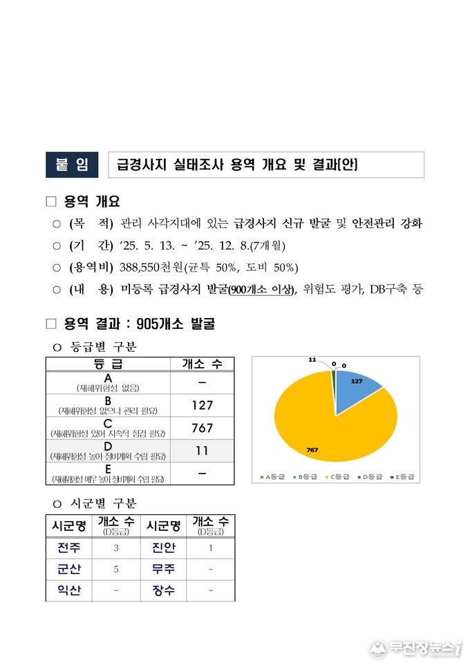 전북특별자치도가 관리 사각지대에 놓여 있던 급경사지 905개소를 새롭게 발굴하고, 체계적인 안전관리에 착수한다.