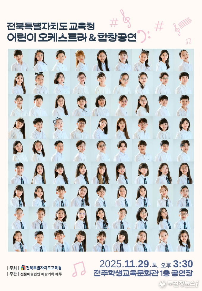 전북특별자치도교육청은 오는 29일 전주학생교육문화회관 1층 공연장에서 ‘2025 전북특별자치도교육청 어린이 오케스트라 & 합창공연’을 개최한다.