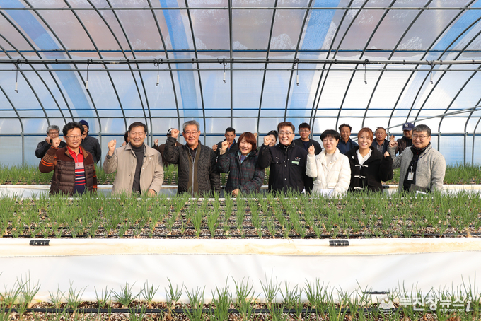 이번 방문은 겨울철 새로운 소득작목 발굴과 생산 기반 강화를 위해 추진된 잎들깨(깻잎)와 쪽파 수경재배 시범농가를 대상으로 이뤄졌으며, 전춘성 군수를 비롯한 관계 공무원들이 직접 농가를 찾아 재배과정에서의 어려움과 기술 적용 상황을 세세히 청취했다.