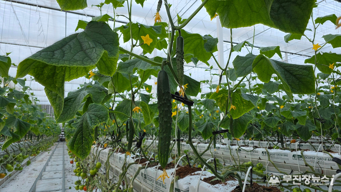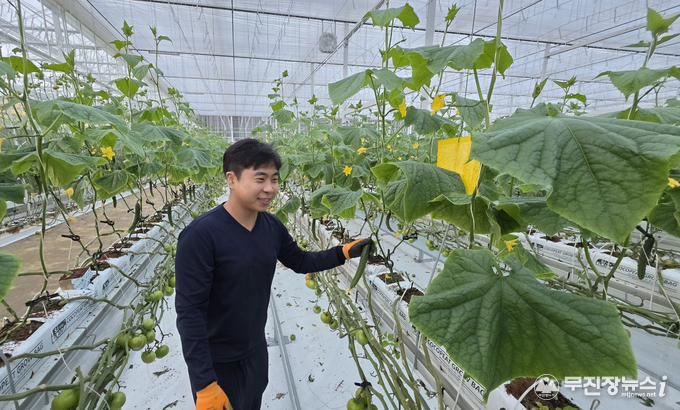 작목 전환을 시도해 첫 수확에 성공한 조인준 청년 농업인은 “토마토 중심 재배에서 벗어나 시장성이 높은 품목을 찾아보고 싶었다”며 “스마트팜 시스템이 있어 처음 도전하는 오이 재배도 안정적으로 준비할 수 있었고 이곳에서 많이 배우고 성장해 장수에 성공적으로 정착하는 청년 농부가 되고 싶다”고 말했다.