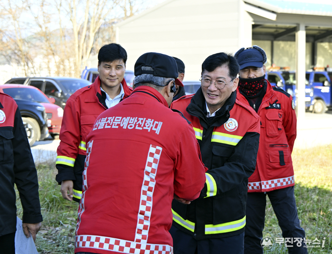 이번 방문은 최근 대원들이 전북 산불지상진화 경연대회에서 우수한 성적을 거두며 전문성을 입증한 데 이어, 본격적인 건조·강풍 시기를 대비해 현장 대응 태세를 점검하고 대원 사기를 높이기 위해 마련됐다.