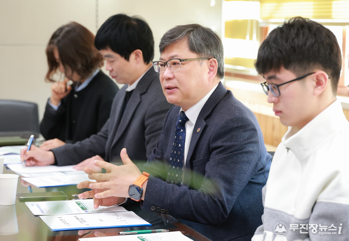 유정기 권한대행은 9일 전주한일고(교장 한영숙)를 방문해 이하진 군 어깨를 두드리며 “일반계
