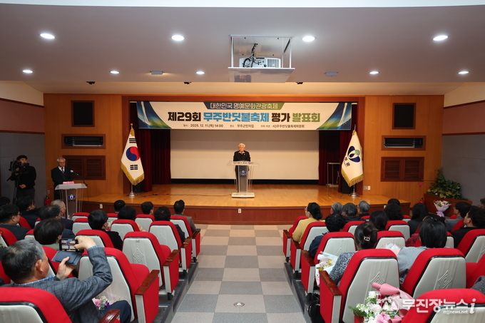 제29회 무주반딧불축제 평가발표회가 지난 11일 무주군민의 집에서 개최됐다. 이번 발표회는 올해 무주반딧불축제의 주요 성과를 공유하고 향후 발전 방향을 논의한다는 취지에서 마련된 자리로,