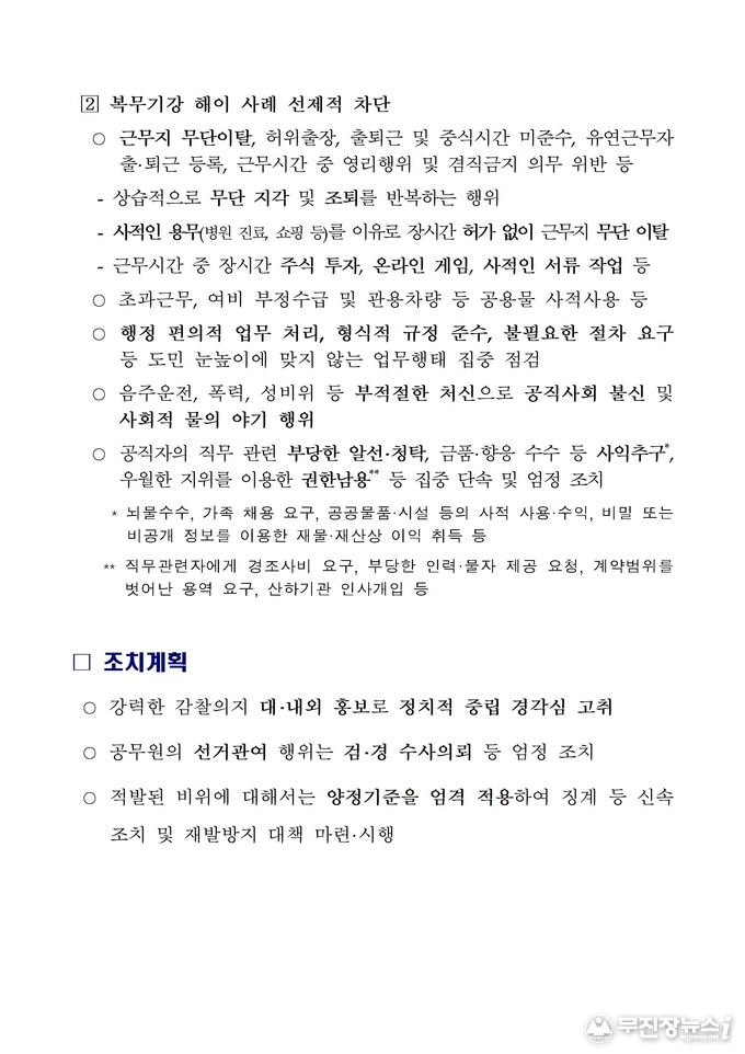 전북자치도 공직기강 특별감찰 계획