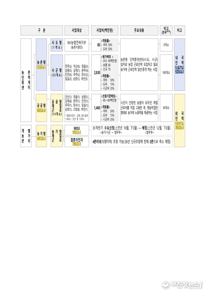 전북특별자치도는 농림축산식품부가 올해 처음 실시한‘2025년 농촌인력중개센터 성과평가’에서 공공형 분야 대상과 농촌형 분야 장려상을 동시에 수상하며, 전국에서 유일하게 두 개 분야 모두에서 수상 기관을 배출했다고 17일 밝혔다.