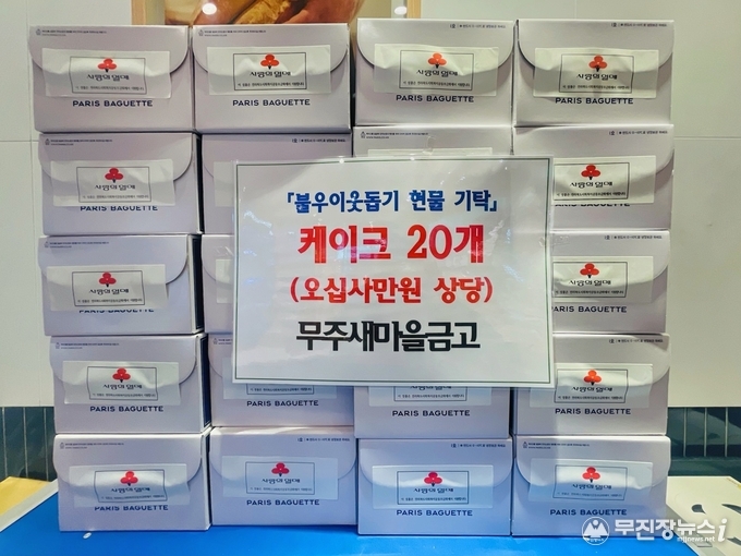 무주새마을금고가 연말을 맞아 지역 내 취약계층의 아동·청소년들을 위한 케이크 20개(54만 원 상당)를 지난 24일 무주읍행정복지센터(읍장 정진화)에 기탁하며 훈훈함을 전했다.
