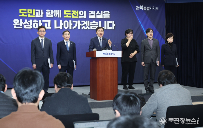 김관영 도지사는 5일 전북도청 기자회견장에서 신년 기자회견을 열고 2026년 도정 운영 방향으로‘도전경성의 처음과 끝, 도민과 함께’라는 회견문을 발표했다.