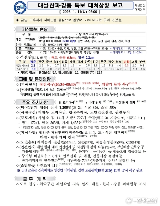 [전북특별자치도청]대설한파특보 대처상황보고(08시 기준)