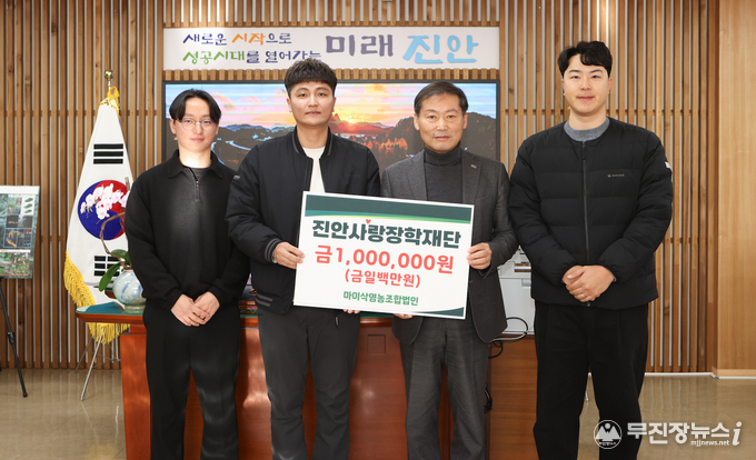 마이삭영농조합법인(청년농업인 드론방제단)은 21일 지역 인재 육성을 위해 진안사랑장학재단에 장학금 100만원을 기탁했다.
