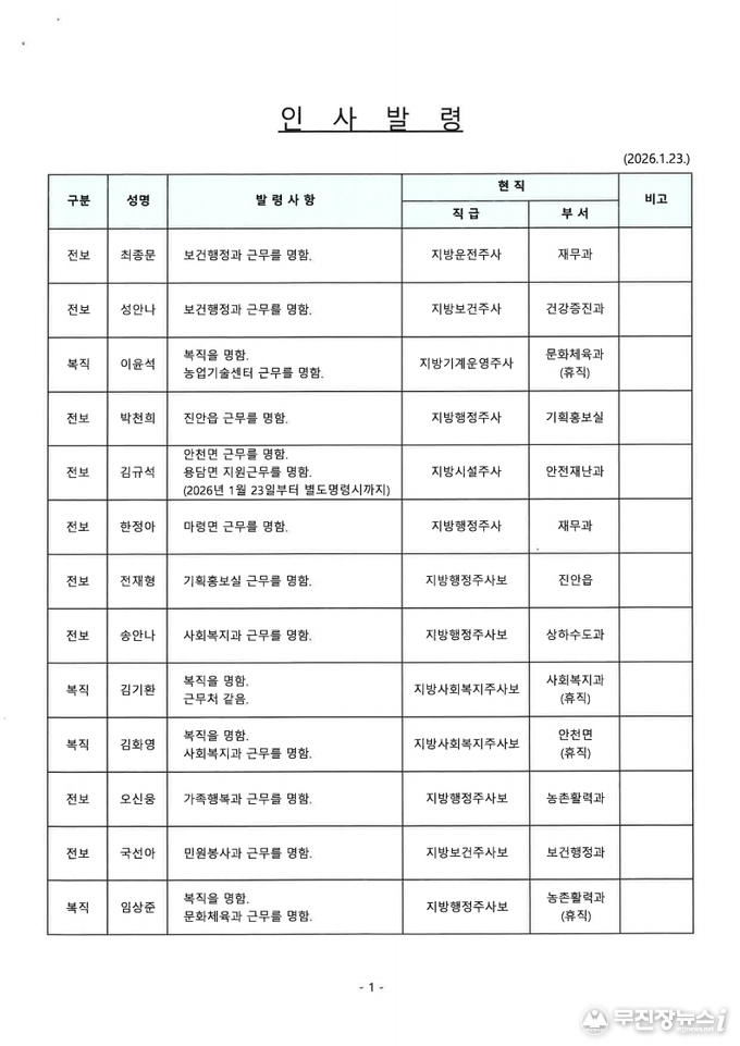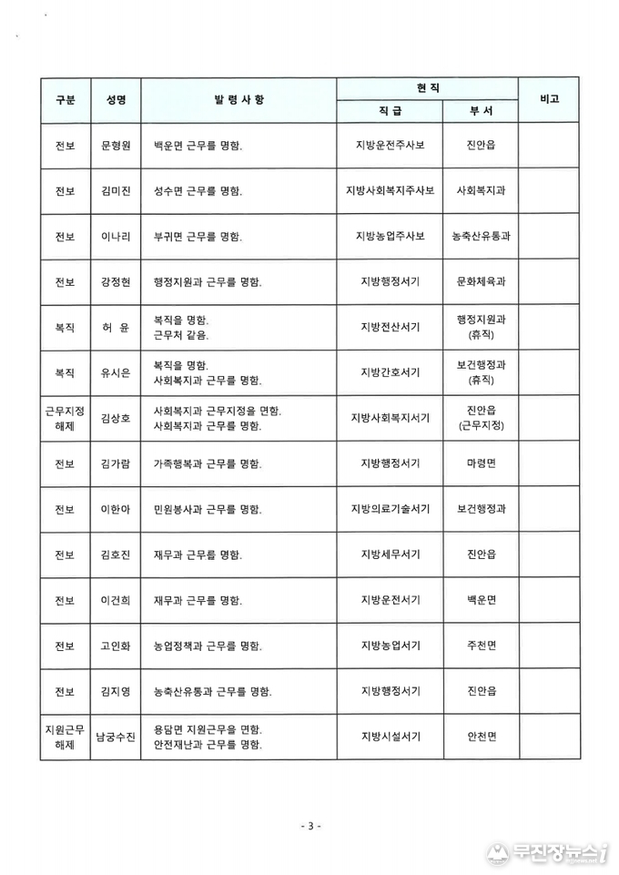 무진장인터넷뉴스 전북 진안군 진안읍 대괭이길 40-36 등록번호 : 아00521 | 발행일 : 2019-01-03 | 발행인 : 한영희 | 편집인 : 한영희 | 전화번호 : 063-247-4365 | FAX : 063-433-1779 Copyright ©2019 mjjnews. All rights reserved.
