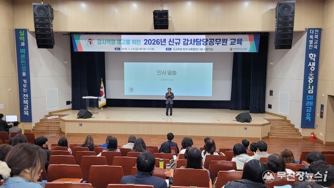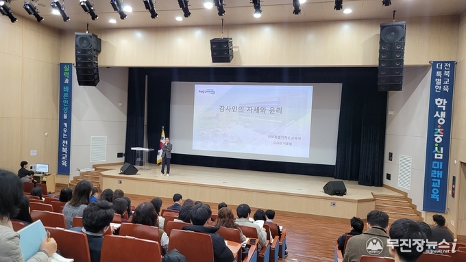 전북특별자치도교육청은 23일 창조나래 시청각실에서 도교육청 및 교육지원청 신규 감사담당공무원 등 80여 명을 대상으로 역량강화 교육을 실시했다.