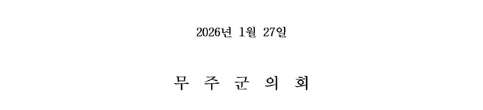 회기 첫날인 27일 무주군의회는 제1차 본회의를 열어 2025회계연도 세입·세출 결산검사 위원(대표위원 문은영)을 선임했다. 그리고 이영희 의원이 대표 발의한 「여성농업인 특수건강검진 연령 확대 촉구 건의안」을 의원 만장일치로 채택했다.