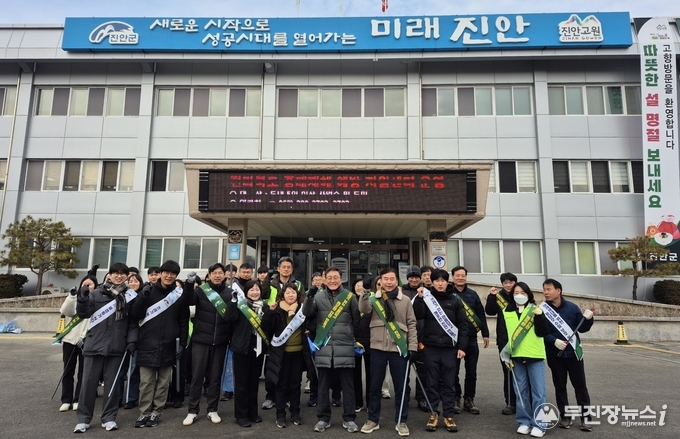 진안군은 설 명절을 앞두고 4일, 군청 환경과와 진안읍 행정복지센터 직원 60여 명이 참여한 가운데 진안읍 시가지 일원에서 환경정화활동과 생활쓰레기 저녁시간 배출 캠페인을 추진했다.