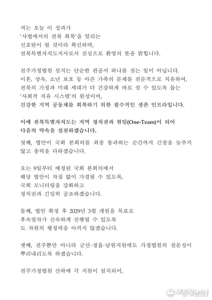 [입장문]전주가정법원 신설 법사위 통과 관련 김관영 도지사 환영 입장문