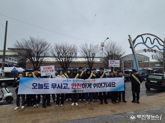장수군은 지난 10일 설 명절을 앞두고 교통량 급증에 따른 교통사고 예방과 안전한 보행환경 조성을 위해 교통안전 캠페인을 실시했다고 밝혔다.