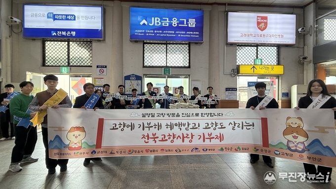 전북특별자치도는 13일 전주역에서 전주시와 농협중앙회 직원들과 함께 설 명절을 맞아 고향을 찾은 출향민을 대상으로 고향사랑기부제 인식 제고를 위한 합동 홍보 활동을 펼쳤다.