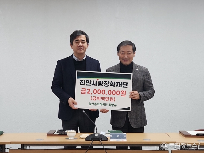 진안사랑장학재단은 진안군청 최방규 농산촌미래국장이 장학금 200만원을 전달했다고 밝혔다.