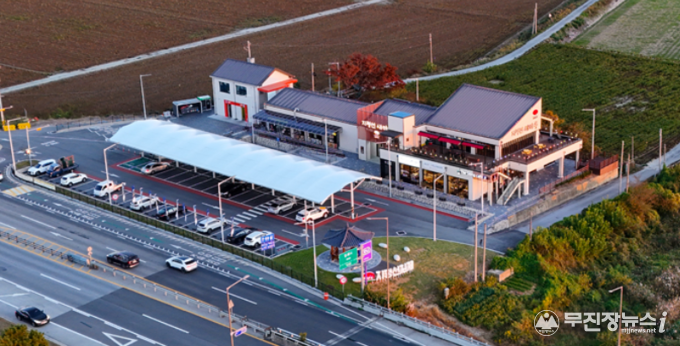▲ 지평선 새마루 스마트복합 쉼터는 김제시가 구 동진강 휴게소를 리모델링해 조성한 농특산물 홍보·판매 복합공간이다. 1층에는 편의점·북 쉼터·수유실·식당과 농특산물 판매장인 지평선몰이 들어서 지역 특산물을 한곳에서 만나볼 수 있다. 2층에는 카페·휴게(전망)공간으로 구성돼 여행객과 지역 주민 모두가 쉬어갈 수 있도록 구성되어 있다.
