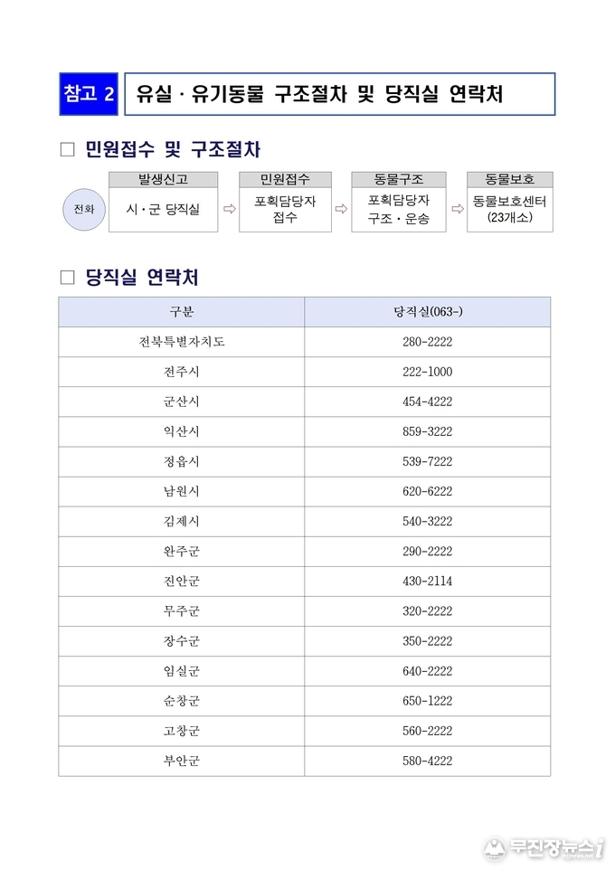 전북특별자치도가 설 명절 연휴 기간 유실·유기동물 발생에 대비해 구조체계를 가동한다.
