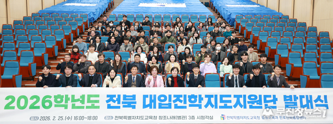 전북특별자치도교육청은 25일 창조나래 시청각실에서 2026년 전북 대입진학지도지원단 발대식을 개최하고, 단위학교가 변화하는 대입환경에 효과적으로 대응할 수 있도록 본격적인 지원 활동에 돌입했다.