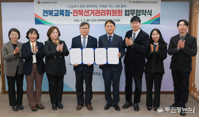 전북특별자치도교육청이 학생 선거교육 및 민주시민교육 활성화를 위해 전북특별자치도선거관리위원회와 협력 체계를 구축한다.