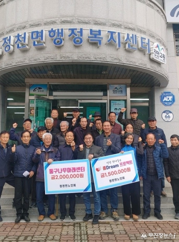 진안군 정천면 노인회(회장 안순용)는 지난 6일 정천면 행정복지센터에서 이웃돕기 성금 350만원을 기탁했다.