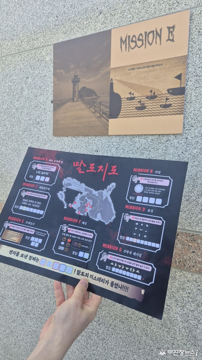 「말도의 미스터리」는 섬 전체를 무대로 GPS와 AR(증강현실) 기술을 활용해 이용자가 직접 미션을 수행하는 몰입형 체험 콘텐츠이다. 말도 초등학교 폐교 부지 등 주요 거점에 NFC 태깅 기반 IoT 장비를 적용하고, 1인칭 3D 영상과 지역 주민 구술을 활용한 음성 인터랙션을 결합하여 현장 체험성을 극대화하였다. 특히 섬 고유의 분위기를 반영한 호러 스토리텔링을 도입함으로써 MZ세대를 포함한 다양한 연령층의 참여를 유도하고 있다.