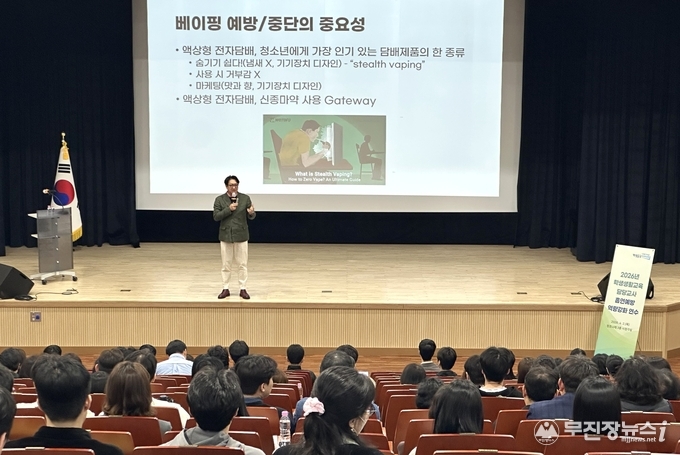 전북교육청은 2일 본청 창조나래 시청각실에서 도내 중·고등학교 학생생활교육 담당 교사 340명을 대상으로 ‘2026년 학생생활교육 담당자 흡연예방교육 역량 강화 연수’를 개최했다.