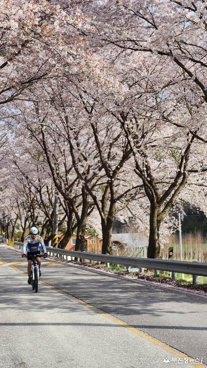 진안의 벚꽃 관광은 차량 이동과 도보 관광을 모두 즐길 수 있다는 점에서 매력을 더한다. 대표적인 드라이브 코스로는 용담호 일원의 벚꽃길과 데미샘 방면 코스가 있다. 특히 용담호 벚꽃길은 호수와 어우러진 풍경이 인상적으로 현재 벚꽃이 만개해 있으며 이번 주말까지 절정을 유지할 것으로 예상된다. 백운면 데미샘 방향은 청정 자연 속 조용한 드라이브를 즐기기에 적합하다. 굽이진 도로를 따라 이어진 벚꽃길은 차창 밖 풍경만으로도 봄의 정취를 충분히 느낄 수 있다.