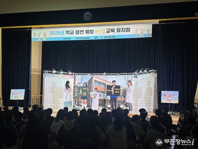 장수군보건의료원(원장 노승무)은 장수초등학교와 전북유니텍고등학교에서 지역 내 학생 및 교직원을 대상으로 흡연·음주 예방 뮤지컬 공연을 운영했다고 10일 밝혔다.