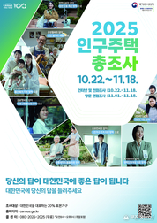 진안군은 10월 22일부터 11월 18일까지 ‘2025 인구주택총조사’를 실시한다. 인구주택총조사는 5년마다 시행되는 국가 기본통계 조사로 우리나라 인구 규모와 가구 특성, 주택 현황 등을 종합적으로 파악해 각종 정책 수립의 기초자료로 활용된다. 이번 조사는 관내 20% 표본 가구와 기숙 및 사회시설을 대상으로 조사를 진행한다. 군은 주민들의 편의와 조사 품질 제고를 위해 10월 22일부터 31일까지 인터넷, 모바일, 전화 등을 통한 비대면 조사 기간을 운영한다. 해당 기간에는 통계청에서 발송한 안내문을 받은 조사 대상 가구가 직접 참여할 수 있으며, 비대면 조사에 참여하지 않은 가구는 11월 1일부터 18일까지 조사원이 가구에 방문하여 면접조사를 실시할 예정이다. 특히, 이번 조사는 국민 부담을 줄이기 위해 13개 항목은 행정자료로 대체하고, 가족 돌봄 시간과 결혼계획·의향 등 7개 신규 항목을 포함한 총 55개 항목으로 구성되어 진행될 예정이다. 진안군 관계자는 “인구주택총조사는 통계법 제33조에 따라 통계작성 목적으로만 사용되며, 개인 정보는 철저히 보장된다”며 “올해로 100주년을 맞이한 인구주택총조사가 성공적으로 추진될 수 있도록 군민 여러분의 적극
