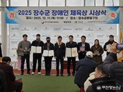 장수군은 11일 장수군론볼경기장에서 ‘장수군 장애인체육상 시상식’을 개최했다고 밝혔다. 이번 시상식은 한 해 동안 장애인체육 발전을 위해 노력해 온 선수, 지도자, 관계자들의 성과를 돌아보고 그 노고를 격려하기 위한 자리로 마련됐다. 행사에서는 도쿄 패럴림픽에서 뛰어난 활약으로 대한민국의 위상을 높인 백영복 선수의 ‘체육훈장 맹호장’ 전수식이 함께 진행됐다. 전수식은 지역 장애인체육인의 자긍심을 높였으며, 참석자들에게 큰 감동을 전하는 의미 있는 시간이 됐다. 유공자 시상에서는 장수군장애인슐런협회가 단체표창을 수상하였으며, 전문선수표창은 정충효 선수와 홍민기 선수가 각각 선정되었다. 또한 이병현 선수가 생활체육선수표창을 받았고, 김균수 장수군장애인보호작업장 관장과 정길수 장수군장애인슐런협회 센터장이 공로패를, 이용석 풋살협회 회장이 감사패를 각각 수상하며 장애인체육 발전에 기여한 공로를 인정받았다. 최훈식 군수는 “오늘의 시상은 장애인체육을 위해 땀을 흘려온 모든 분들의 정성과 헌신을 확인하는 자리였다”며 “장수군은 생활체육부터 전문체육까지 모든 장애인 선수들이 역량을 발휘할 수 있도록 지원체계를 더욱 강화해 나가겠다”고 말했다. 이어 “체육 활동이 군민의