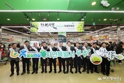 ‘무주 반딧불 샤인머스캣 특별 판매전’이 오는 24일까지 서울 양재 하나로마트에서 열린다. 18일 시작된 이 행사는 고랭지 무주에서 재배·생산된 샤인머스캣의 맛과 품질을 서울과 수도권 소비자들에게 알려 소비를 촉진시키고 유통을 확대한다는 취지에서 마련된 것으로, 1.5kg 2만 박스(총 30톤) 판매를 목표로 하고 있다. 무주군은 이번 행사가 공급 과잉으로 가격 폭락의 어려움을 겪고 있는 농가들의 소득 안정을 뒷받침하는 버팀목이 될 것으로 기대하고 있다. 19일에는 황인홍 무주군수와 이동근 농협유통 대표이사, 최영섭 양재지사장을 비롯한 무주군과 농협유통 관계자 등 20여 명이 함께 현장에서 무주 반딧불 샤인머스캣의 우수성을 알리며 소비 촉진에 나서 의미를 더했다. 황인홍 무주군수는 “서울시민들에게 아무도 흉내 낼 수 없는 무주의 맛을 선보일 수 있게 된 것을 매우 뜻깊게 생각한다”라며 “이 자리가 반딧불이의 고장 무주를 알리고 반딧불 샤인머스켓과 소비자를 잇는 판로 확대의 발판이 되길 기대한다”라고 밝혔다. 이어 무주 반딧불 샤인머스캣의 지속적인 품질관리와 유통 기반을 더욱 공고히 해 나가겠다는 뜻을 덧붙였다. 한편, 무주군은 올해 무주농산물 가격안정기금사업