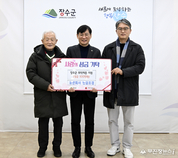 장수군은 (유)번암조경(대표 김지영)이 군청을 방문해 지역의 어려운 이웃을 돕기 위해 이웃돕기 성금 500만원을 기탁했다고 27일 밝혔다. 장수농공단지에 위치한 (유)번암조경은 15여 명의 직원이 근무하고 있는 지역 기업으로 평소에도 사회적 책임을 중요하게 여기며 지역사회의 나눔 활동에 꾸준히 참여한 것으로 알려졌다. 이번 성금은 경기 침체와 물가 상승 등으로 어려움을 겪고 있는 지역 내 취약계층 이웃들에게 실질적인 도움을 전하고 따뜻한 나눔의 가치를 지역사회 전반에 확산하고자 마련됐다. 기탁된 성금은 사회복지공동모금회를 통해 겨울철 복지사각지대 위기에 놓인 저소득 계층에게 전달될 예정이다. 김지영 대표는 “이번 성금 기탁을 통해 지역사회와 함께할 수 있어 매우 뜻깊게 생각한다”며 “비록 작은 정성이지만 어려운 이웃들에게 조금이나마 도움이 되기를 바란다”고 말했다. 최훈식 군수는 “지역의 어려운 이웃을 위해 흔쾌히 따뜻한 마음을 전해주신 번암조경에 깊이 감사드린다”며 “기부된 소중한 성금이 우리 지역의 어려운 이웃에게 잘 전달될 수 있도록 하겠다”고 밝혔다. 한편 장수군은 앞으로도 지역 기업과 단체, 주민이 함께하는 나눔 실천을 적극 장려해 모두가 함께 따뜻