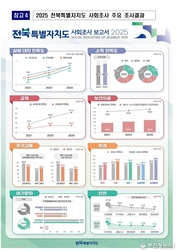 전북특별자치도는 도민의 삶의 질과 사회 인식을 종합적으로 파악하기 위해 4월 10일부터 29일까지 도내 14개 시군 1만3,515개 표본가구를 대상으로‘2026 전북특별자치도 사회조사’를 실시한다. 이번 조사는 도민의 삶의 질 수준과 주관적 인식 변화를 체계적으로 분석해 정책 수립에 반영하기 위한 기초자료를 확보하는 데 목적이 있다. 2007년부터 매년 실시되고 있으며, 도민 체감형 정책 설계의 핵심 기반 자료로 활용되고 있다. 조사 분야는 ▲주관적 웰빙 ▲건강(의료) ▲사회통합 ▲안전 ▲환경 ▲가구·가족 ▲지역 특성 등 7개 영역으로, 삶의 만족도와 의료 이용, 사회적 신뢰, 범죄 불안, 기후변화 인식, 가족 관계 등 도민 생활 전반을 폭넓게 다룬다. 특히 올해는 2024년 국가데이터연구원에 의뢰하여 수행한 『전북특별자치도 사회지표 및 사회조사 항목체계 개편 연구(‘25.1.~’25.7.)』결과를 적극 반영하여 조사 항목과 지표체계를 전면 개편했다. 아울러 최근 사회적 이슈를 반영하여 결혼·출산·보육, 기후변화, 사회갈등 등 주요 분야에 대한 신규 항목을 추가함으로써, 변화하는 사회 환경과 정책 수요를 보다 충실히 반영하고자 하였다. 시군별 특성을 반영한